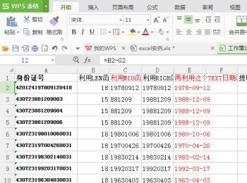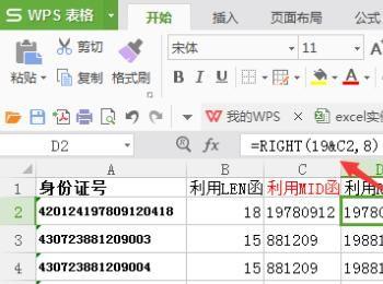 利用RIGH函数将这个全部的完整日期截取下来,然后串上这个19就是因为这样具有统一性的,这样就算是15位数字的身份证号也能添加上日期,从右边截取8位数字对又可以有效的去掉加上的那个19的重复性。