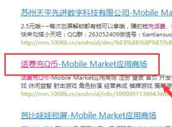 然后从下方一些列的检索结果中找到有关话费充Q币的这一条。