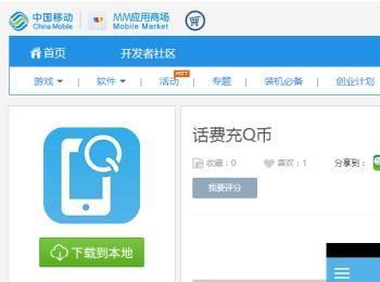 接着就会进入话费充Q币的这样一个应用下载页面,有中国移动授权,然后注意到页面右上角的二维码,打开手机上的扫一扫功能进行扫描。