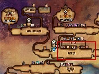 之后我们在黑暗城按快捷键“N”,即可打开地图,我们在走到地图中红框的地方,如图所示。