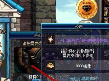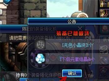 之后会弹出公告,显示强化的武器名称、需要的金币数量、无色晶体的数量,之后点击确定即可开始强化,注意需要将金币和无色晶体准备好,如图所示。