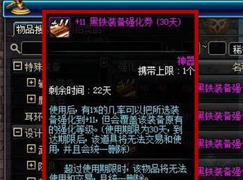 我们还可以使用“幸运强化卷”进行强化装备,我们使用这个道具,只要在+14一下的装备,都可以保证强化等级不会下降,对我们强化装备成功非常有帮助,如图所示。