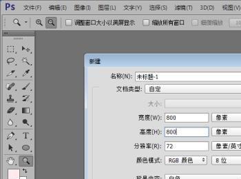 打开ps软件之后,我们新建一个画布(选择文件-新建或者是快捷键Ctrl+N都是可以的),小编就新建了一个800*800的画布给大家做示范。