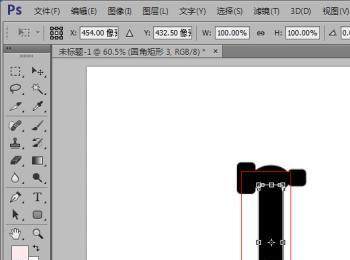 接着,我们画锤子的把手,我们先画一个60*280的圆角矩形,如图。