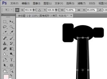 然后,我们画一个45*45的圆角矩形,这样就画好了锤子的头部。