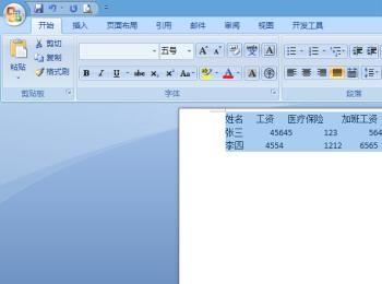 打开一张工资表的Word文档,这时候会看到竖向不对齐的现象