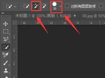 选择快速选择工具,在上面的属性编辑里设置参数如图所示: