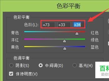 点击色彩平衡选项,选择中间调调节参数如图所示: