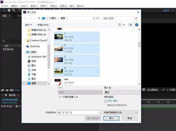 4、打开项目面板,右击该面板,在弹出的快捷菜单中选择"导入>文件…"命令或按住Ctrl+I键打开【导入文件】对话框,选择四张图片,其名称分别为1和2、3、4,单击"导入"按钮,即被导入到项目面板中,如下图所示。