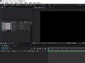 5、将项目面板中的"1"、"2"、"3"和"4"图片拖到时间线面板中,如下图所示。