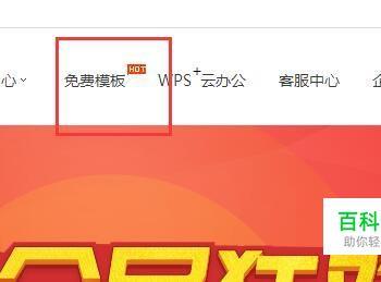 在WPS网站,首页一栏找到免费模板,单击免费模板,进入模板页,在网站首页有稻壳儿字样与稻壳儿logo标志。