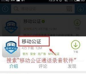 为了规避本机自带的通话录音的缺点,现在为大家介绍第三方应用,不但支持通话录音、现场录音、拍照/摄像,还提供云端存证、出具公证书以及专业的法律服务等功能,让你的录音具有超然的法律作用。 第一步:打开手机应用商店,搜索“移动公证”