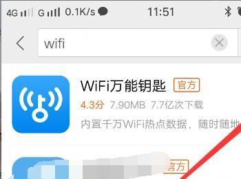 打开之后在查找栏输入:wifi万能钥匙,在下面就会自动出现软件选项。点击右侧的下载。软件就会自动下载安装。