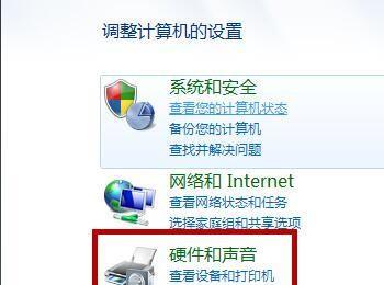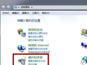 之后弹出控制面板对话框,我们点击“硬件和声音”选项,如图所示。