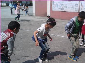 跳橡皮筋 把跳皮筋的孩子一般分两组,以手心手背分组,以石头剪子布决定谁先跳。后跳的一组选两个人撑皮筋。无论跳什么花样,皮筋高度都基本要从踝关节跳到头顶。