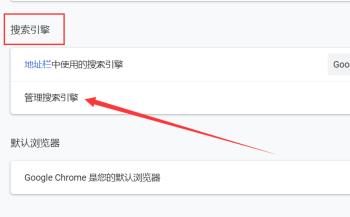 4. 第四步打开【设置】窗口后,先找到【搜索引擎】,接着根据下图箭头所指,点击【管理搜索引擎】选项。