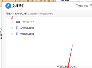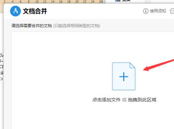 3. 第三步打开【文档合并】窗口后,根据下图箭头所指,点击【+】号图标。