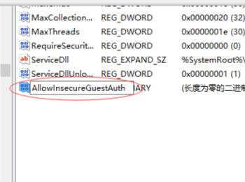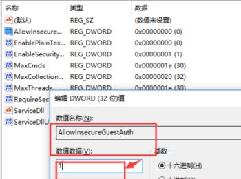 4. 在右侧空白处,右键,选择新建一个项,并将新创建的DWORD项重命名为“AllowInsecureGuestAuth”,如图。