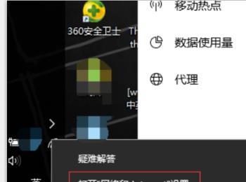 6. 然后在任务栏右下方点击网络图标,在打开的菜单中,选择“网络和internet设置”选项。