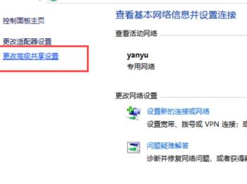 8. 在打开的页面,点击左上方的“更改高级共享设置”选项。