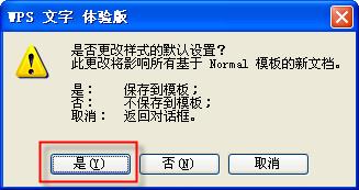 此时,系统会提示“是否更改样式的默认设置?”,选择“是”,完成设置(图5)。