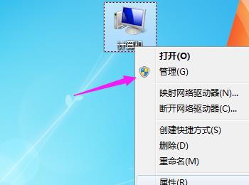 1. 首先第一步鼠标右键单击【计算机】图标,在弹出的菜单栏中根据下图箭头所指,点击【管理】选项。