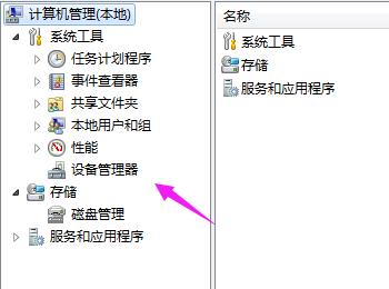 2. 第二步打开【计算机管理】窗口后,根据下图箭头所指,点击左侧【设备管理器】选项。