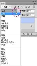 选择一个图层后,单击“图层”面板顶部的按钮,在打开的下拉菜单中可以为该图层选择一种混合模式。