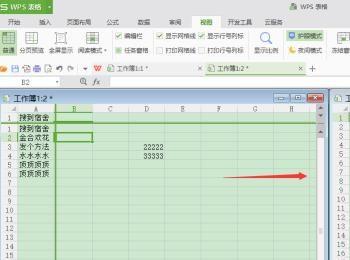 在这四个窗口标签操作按钮的右侧有一个并排比较按钮,这里有一个很好的功能。点击并排按钮,两个工作簿排列好后,在并排按钮右侧有一个同步滑动按钮,可以使两个工作簿同时滑动滚轴。对比完,再次点击取消即可。