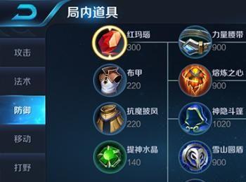 出门装:红玛瑙。 出门装选择红玛瑙是很合适的,红玛瑙可以增加英雄300最大生命。在出门的时候,大家的输出能力都有限,能够有300最大生命的加成,可以让程咬金的生存能力提高不少,再加上程咬金是一个突进能力较为优秀的坦克英雄,突进到敌人身边可以跟敌人持续对拼。