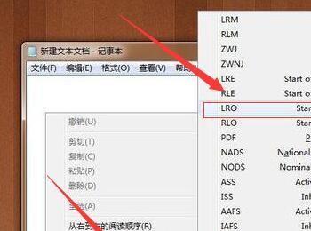 接着我们打开该空白文档,打开后鼠标右键,在出来的界面中选择“插入Unicode控制字符”,在选择“选择LRO”。