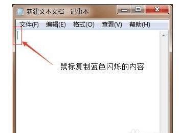 接着我们可以在我们的文本文档中看到蓝色的光标闪烁,我们选择复制该蓝色光标!