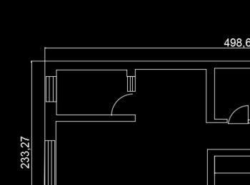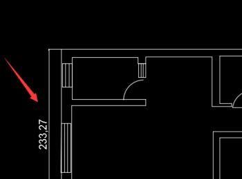 使用对齐标注,先标注出一面墙体的尺寸,如图所示: