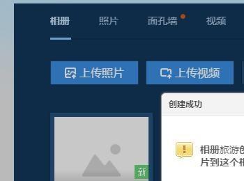 如果要上传新建相册,则点击“创建相册”,输入新相册的名称、描述,分类以及权限,然后点击“确定”。