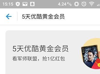 进入蚂蚁会员界面,下滑屏幕,选择“5天优酷黄金会员”