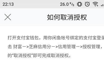 需要注意的是,取消授权操作时,在闲鱼中是不可取消的,在资料中,只有“查看芝麻分”选项,所以需要到支付宝操作。