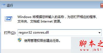 3、然后打开“开始-运行-输入regsvr32 comres.dll”,回车即可解决错误提示。