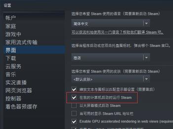 3. 第三步打开【设置】窗口后,根据下图所示,先点击左侧【界面】选项,接着找到【在我的计算机启动时运行Steam】。