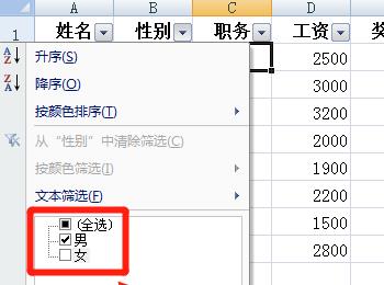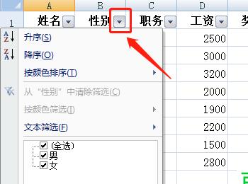 9. 最后根据下图箭头所指,成功按照性别筛选出相关数据。