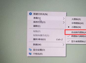 2.点击取消勾选子菜单的“自动排列图标”,再点击勾选“图标与网络线对齐“选项