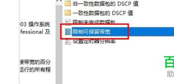 5. 在右侧找到“限制可保留带宽”的选项,双击。