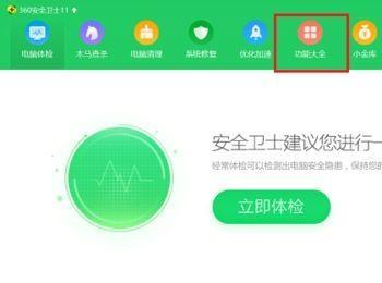 第二步我们开始来卸载桌面助手,打开安全卫士,点击功能大全,如下图所示: