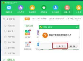 第五步可以看到弹出框确定是否删除桌面助手,点击确定,如下图所示: