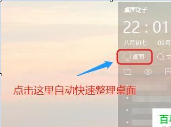 首先也是最主要的功能就是整理电脑桌面,有些人的电脑桌面上放置了很多的文件,其中包括图片、文件夹以及视频等,这时我们只需点击桌面助手挂件上方的“桌面”即可快速的将它们按照类别归类到一起,而桌面上只留下常规的一些应用;