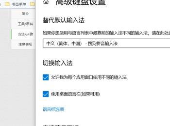 5. 在打开的页面,选择“高级键盘设置”选项点击,然后在“允许我为每个应用窗口使用不同的输入法”的选项前面打上勾,最后点击确定即可。