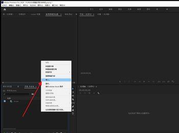 3.第三步,在下图所示的pr软件编辑页面中,右击项目栏空白处,接着点击导入选项,导入想要编辑的视频,或者缩小PR的窗口,然后拖动视频素材到软件中。