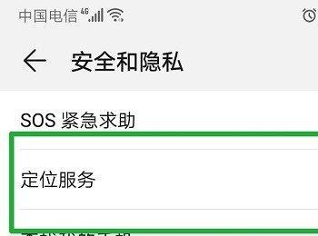 3. 第三步,切换至安全和隐私页面后,找到定位服务选项,点击打开。