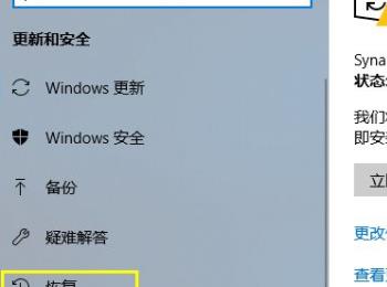 3. 第三步进入【更新和安全】页面后,根据下图箭头所指,点击左侧【恢复】。