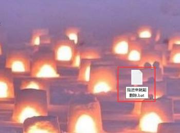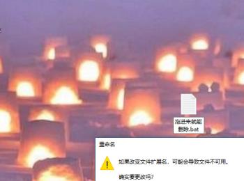 4.然后在桌面点击文本文档名称,重新命名为:拖进来就能删除.bat,然后回车。