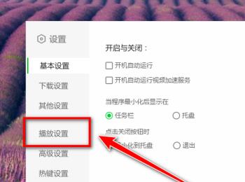 3.第三步,在下图所示的设置页面中,点击页面左侧箭头所指的播放设置选项。